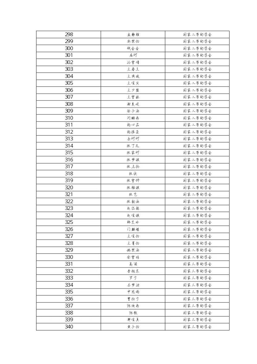 数学与统计学院国家奖助学金评审结果公示