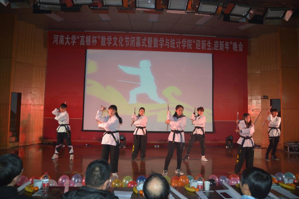 光阴荏苒,岁月匆匆。不知不觉间,数学与统计学院这个大家庭又多了许多可爱的新同学,我们也即将送走忙碌充实而又硕果累累的2019,迎来充满未知与挑战的2020。12月7日晚,我院于计算机二楼报告厅举办了以“‘新’然启航,数尽辉煌”为主题的“高顿杯”数学文化节闭幕式暨迎新生·迎新年晚会。河南大学特聘教授关庄丹、 学院党委书记史富强 、院长冯淑霞、党委副书记赵红磊、副院长杨一平、副院长解俊山、各年级辅导员及部分教师代表莅临晚会。